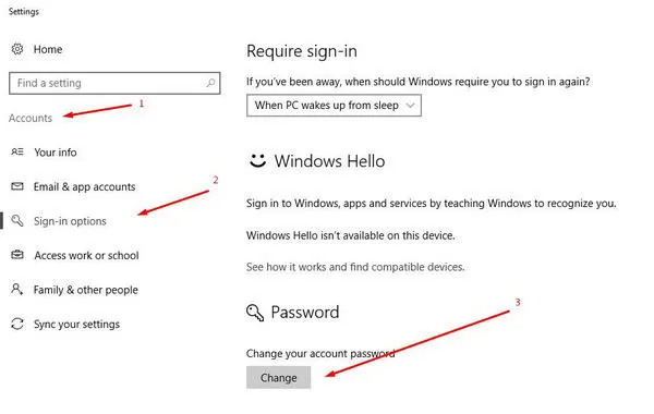 Step 2 : Now, select "Sign-in options" and click on "Change your account password."
